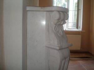 El dibujo de la chimenea fue tomado en una de las revistas de Moscú. El proyecto del maestro Eugene. La piedra es de mármol – Volokas griego. Columnas – bloques enteros, fachada – losas de 3 cm de espesor. La chimenea está vivo. Instalado chimenea francesa caja de fuego de clase media. Chimenea de acero inoxidable de alta aleación. La chimenea en todos los elementos está totalmente lijado y pulido. Tendrá el mismo aspecto después de 100 años. La chimenea se puede utilizar continuamente durante semanas. El revestimiento no se calienta, la temperatura máxima es de hasta 40 grados Celsius. El tiempo de producción es de hasta tres meses y medio.