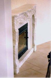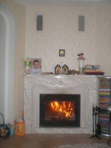 El proyecto y el diseño de la chimenea fue desarrollado por el maestro Eugene. El dibujo de acuerdo con el cliente – Orquídeas. La chimenea está «viva», se instala un hogar francés de clase media. La chimenea está hecha de acero de alta aleación. Posible funcionamiento continuo de la chimenea, durante varias semanas. Portal de la chimenea, mármol griego – Ajax. Columnas – bloques – fachada, bofetada espesor de 3 cm. La chimenea está totalmente lijada y pulida. Plazo de fabricación de una chimenea hasta dos meses y medio, el tamaño de revestimiento 1,35х1,1 m. Junto con la chimenea se fabricó una mesa de mármol tallado. La foto muestra la chimenea después de cinco años de uso. Se ve perfecta.