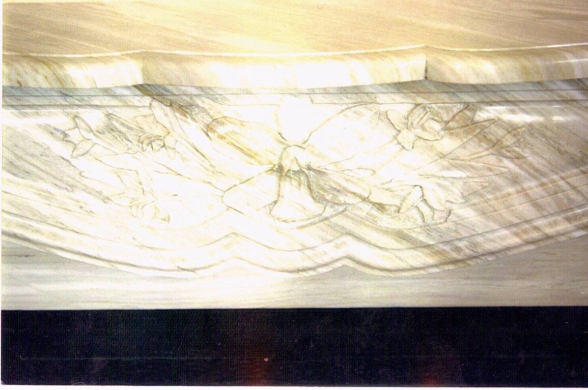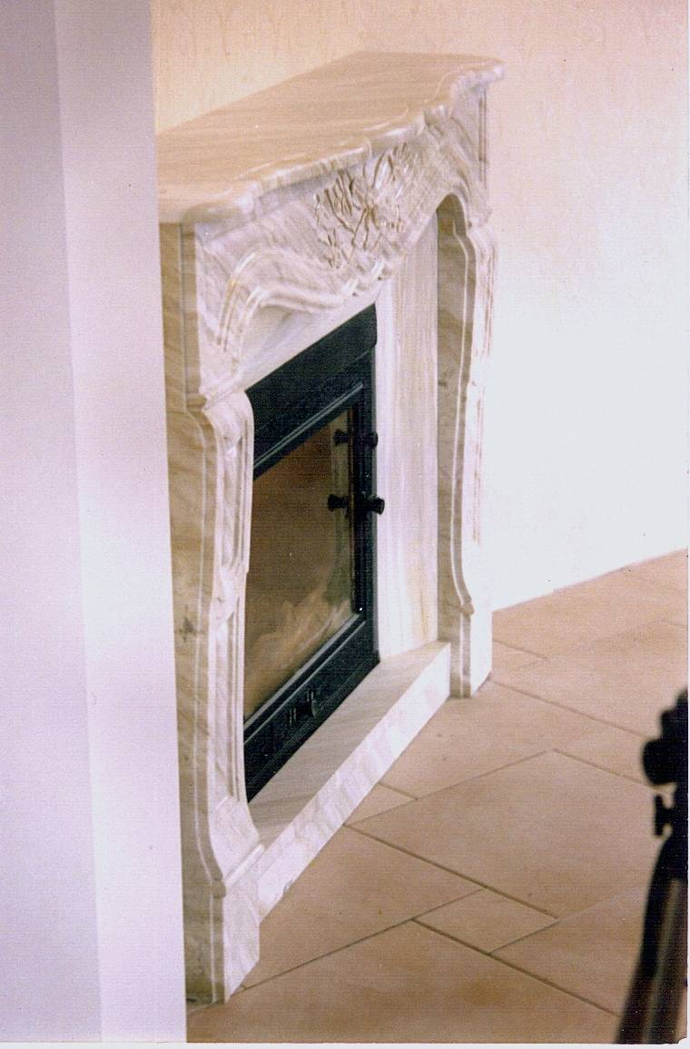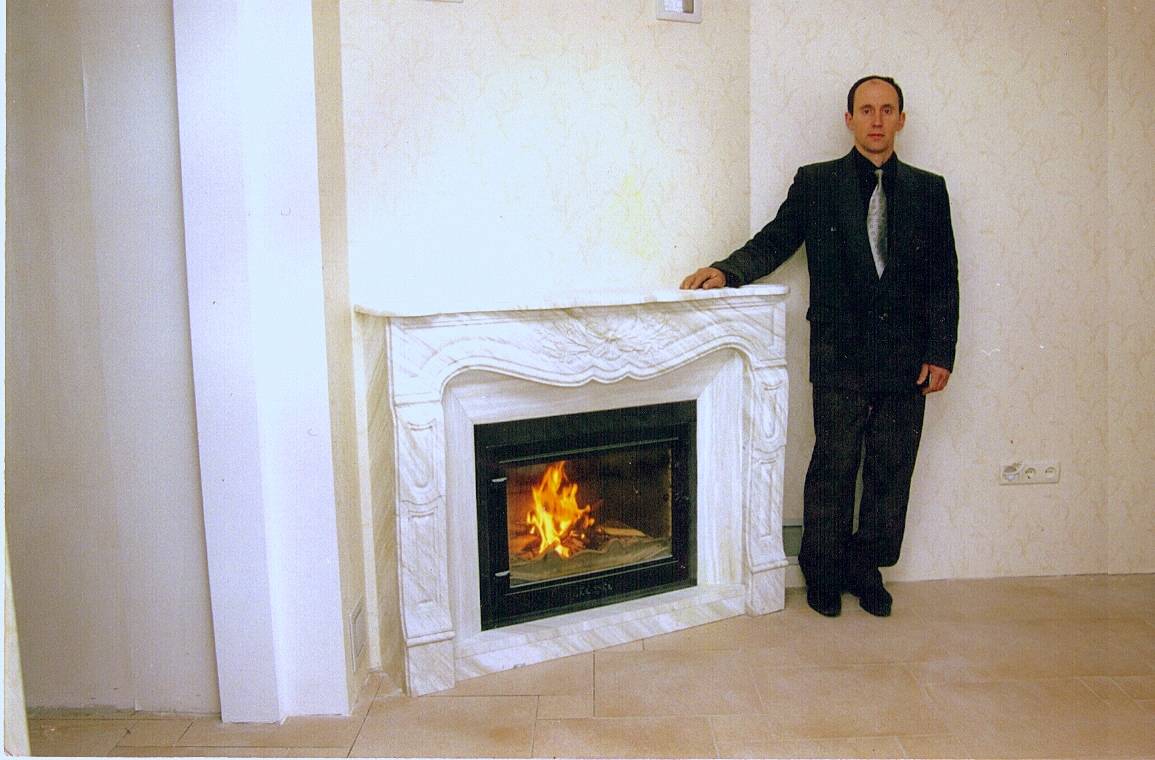 The project and design of the fireplace was developed by master Evgeny. Drawing in agreement with the customer – Orchids. The fireplace is “live”, a French middle-class firebox is installed. The chimney is made of high alloy steel. Continuous operation of a fireplace, within several weeks is possible. Fireplace portal, Greek marble – Ajax. Columns – blocks – facade, slab thickness 3 cm. The fireplace is completely sanded and polished. The production period of the fireplace is up to two and a half months, the facing size is 1.35×1.1 m. A carved marble table is made with the fireplace. The photo shows a fireplace after five years of operation. Looks perfect.